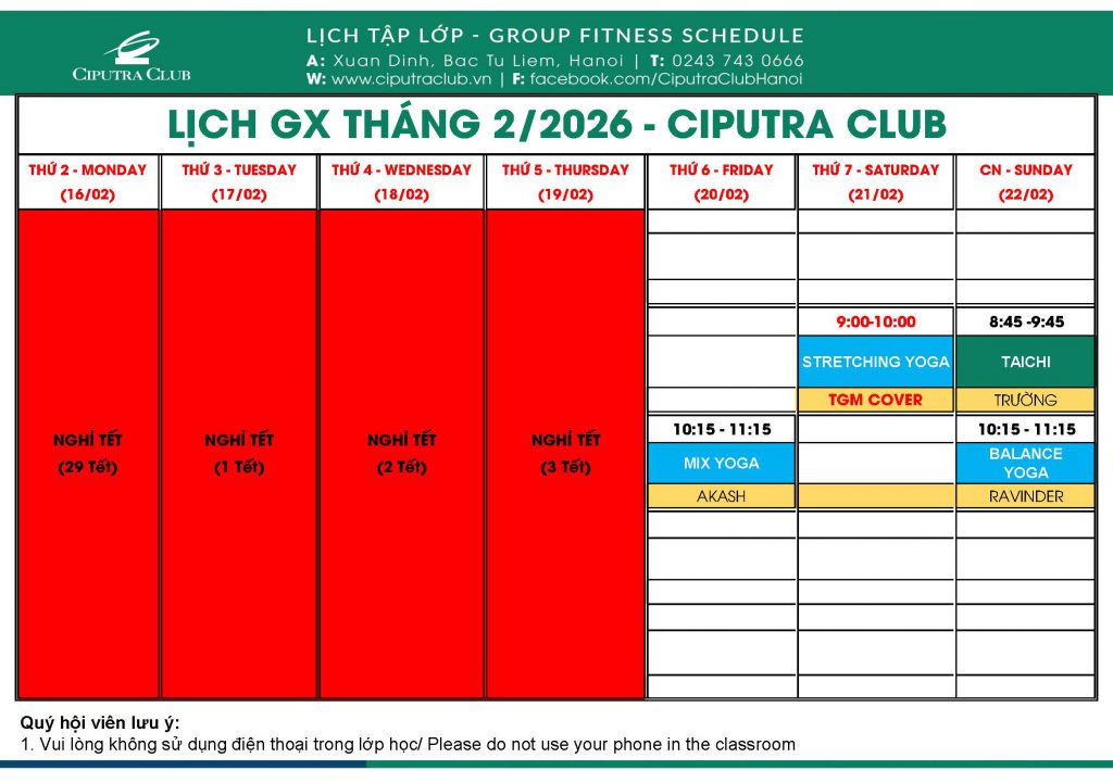 Lịch Lớp Học - Ciputra Club